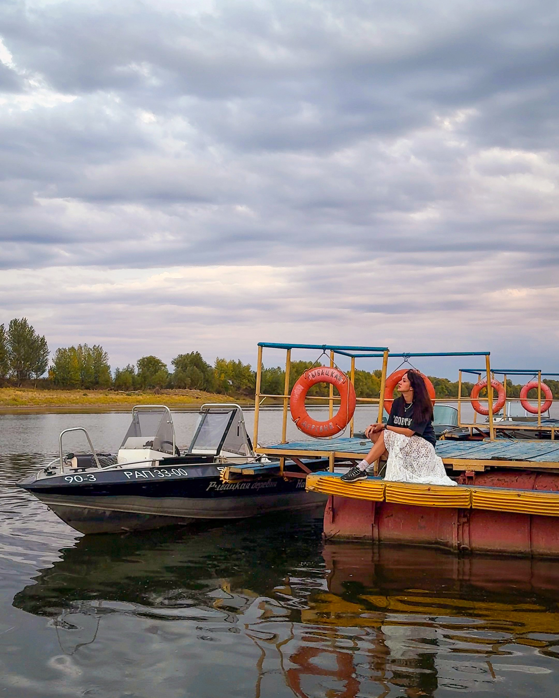 Пришлось фотографировать себя самой. Я взяла небольшой штатив и пошла по территории рыбацкой базы.